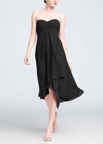 The Detailed Description of David's Bridal Bridesmaid Dresses Strapless Chiffon Short Dress Style F12284, Black, 22