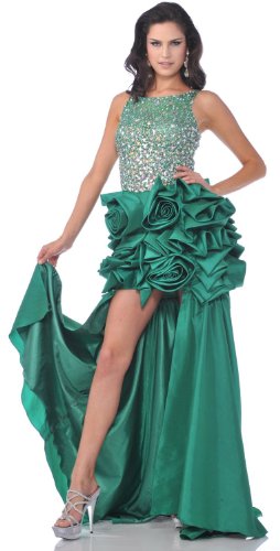 The Detailed Description of Zeilei 7536 Rosettes Detachable Skirt Pageant Prom Dress (4, Green)Features