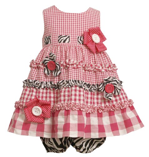 The Detailed Description of Size-3/6M BNJ-3194M 2-Piece FUCHSIA-PINK BUTTON-CENTER FLOWER TIERED CHECK-PRINT SEERSUCKER Spring Summer Party Dress,M03194 Bonnie Jean Baby/NEWBORNFeatures
