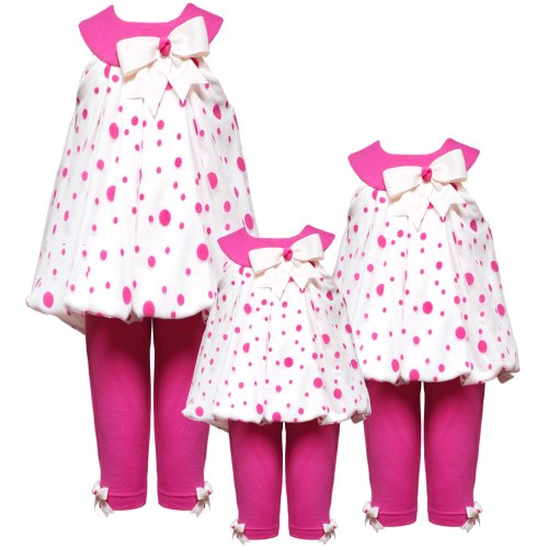 Beautiful IVORY & PINK FLOCK DOT BUBBLE TOP & LEGGINGS outfit/set features sleeveless IVORY & PINK FLOCK DOT MESH OVERLAY BUBBLE TOP with SOLID PINK YOKE NECKLINE and GROSGRAIN BOW TRIM. PINK KNIT PANTS/LEGGINGS features IVORY GROSGRAIN BOW TRIM and comfortable elastic waist. Dress/Top - hand wash, line dry. Pants/Leggings - machine washable. Imported. Dress/Top of polyester - Pants/Leggings of cotton/spandex - Exclusive of trim/decoration. Matching/Coordinating sister styles available in sizes 3M-6X, search for style(s): RRE-47951. More baby & girl party dresses available, search for: " rre-girl-party-dress "