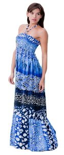 The Detailed Description of La Leela Partywear Halter Long Tube Dress BlueFeatures