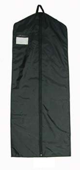 This 66" long, nylon garment bag can be used for travel or storage. It is made in the USA with 200 denier nylon and features a bound hanger opening, a bound window with id card and a polyweb handle for easy carrying. It is made to hold one or two garments and is perfect for holding formal wear and extra long outfits.