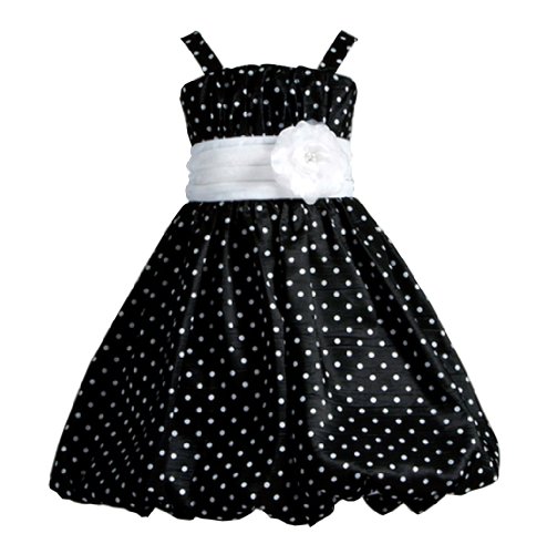 The Detailed Description of Marilyn Polka Dot Bubble Flower Girl Dress with Flower for Girls Fancy Dress Color: Black with White Dots Dress Size: 4TFeatures