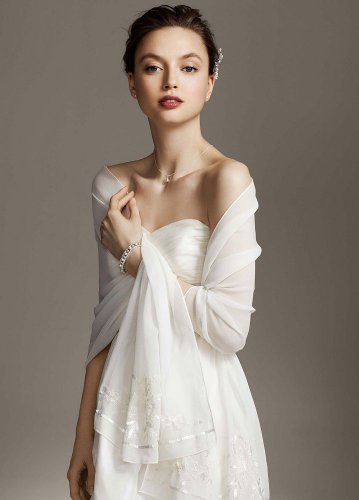 The Detailed Description of David's Bridal Chiffon Beaded Wrap Style BEADEDWRAP, Ivory