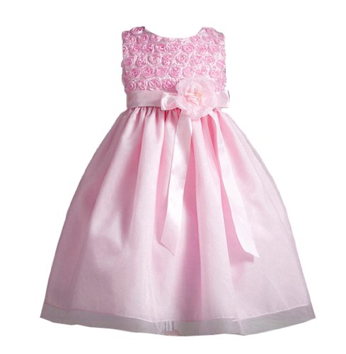 The Detailed Description of Audrey Rosette Embroidered Flower Girl Dress with Flower Sash for Infants Fancy Dress Color: Pink Dress Size: 12M (12 months)Features